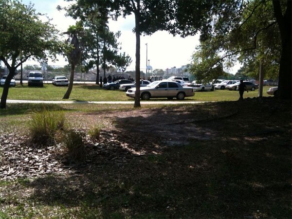 Just got this photo from someone at the Bro Bowl this morning. If you don't know, the Bro Bowl is that thing the City of Tampa calls a skate park that was build before your dad was born. For some reason, it appears that a massive amount of armed supervision is needed today. See you not there.