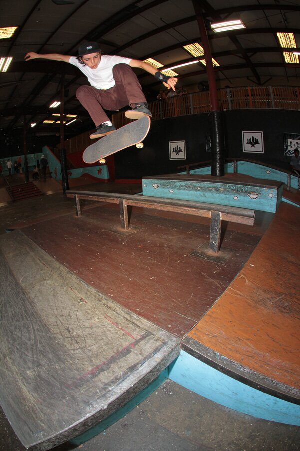 Sly Sullivan has a really good Kickflip as seen here floating one over a table top.