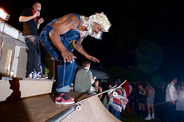 Goodwine was in character. Drinking the cheapest beer available all night, and even pretending like he didn't know how to skate