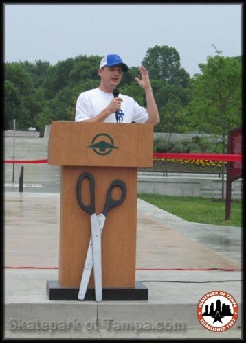 Rob Dyrdek, mayor of the Skate Plaza, gives some kind of speech before the opening. Did you know Nate Sherwood is now Rob's personal assistant?