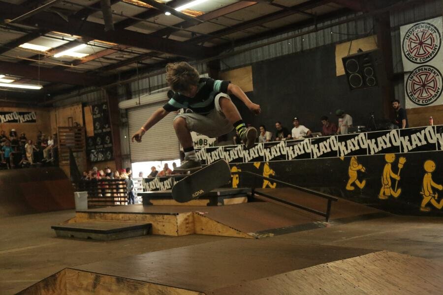 Hal Scarborough with a smooth kickflip repping Kona skate park.