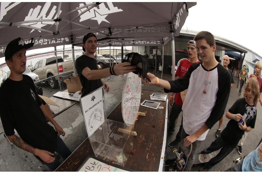Casey and Mikah giving away SPoT gear and taking donations for Boards for Bros.
