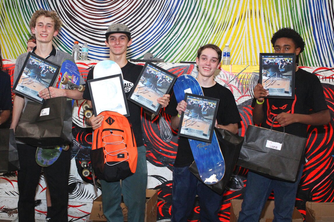 Sponsored Division Winners (L to R): Tyler Wolford (3rd), Jake Yanko (1st), Wesley Box (2nd), Keenan Lewis (4th), Matt Savidakis (5th-not pictured). Thanks to everyone that came out for this rad event and huge thanks to Primitive Skateboards for hooking up the prizes a product toss. See y'all at Tampa Am...