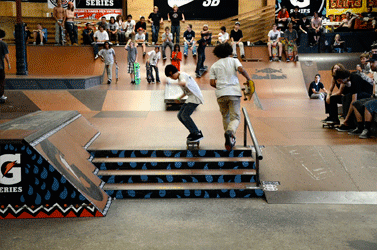 Here we have AJ Dall hanging on to a backside bigspin down the stairs.