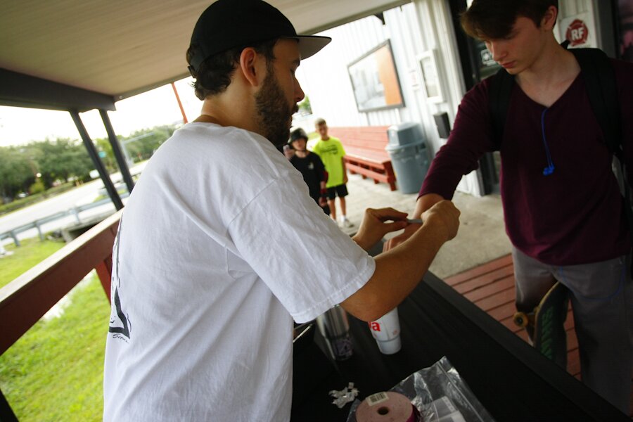 Kirby getting everyone dialed in at registration. You want in? You have to get through Kirby!
