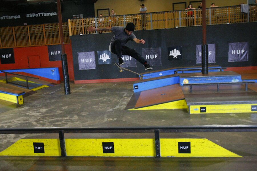 Lestor Cepero going huge with a kickflip over the hip.