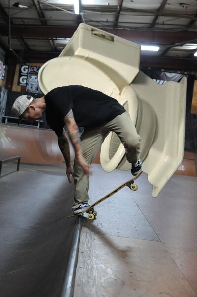 Is Aaron the Poo Poo Bandit? Nah, he just had a fierce battle with a backside noseblunt slide that didn't end in roll away, so for now, it's a Take a Poop.