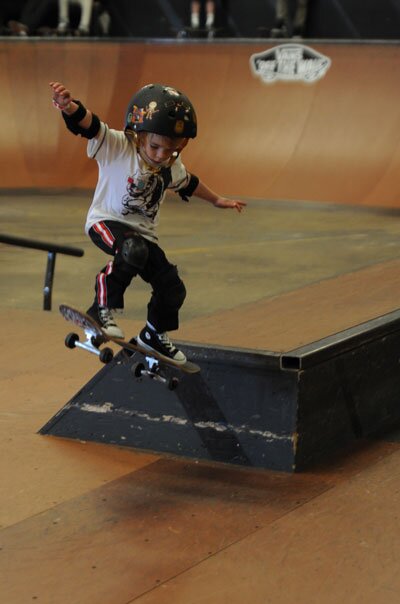 Wait, that’s a live action figure. It's four-year-old Ryan Mckinney aka Tucker. Cute overload had the building cheering, but it was also amazing to see someone that young get creative on the plank making up his own tricks and figuring out his next moves on his own out there.