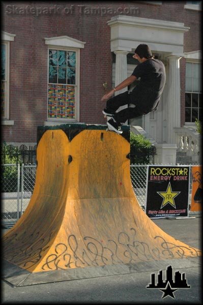 Vans Downtown Showdown 2006 Jose Rojo has to do a hard reach around on this front rock