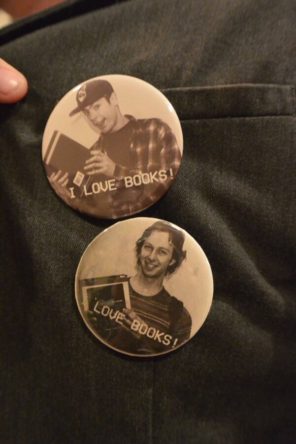 There is a long story about these buttons. Justin on top and Leonard Trubia on bottom.
