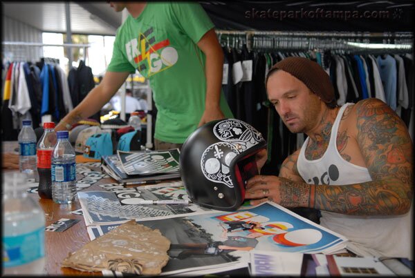 The Moat Show 2009 Kris Markovich decorating some helmets at the Ergo booth