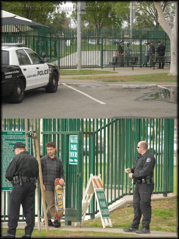 After the Hamburger Banks, we went to some gub'ment skate park that was closed on a Sunday. You know, like when they close basket ball courses, football tracks, and tennis fields on weekends? Minutes after Clem jumped the fence, three cops showed up. Three. They don't even send three cops when some redneck is beating the crap out of his while family in a domestic violence case. Somehow, skateboarding still has the super bad image. I like it. Let's keep skateboarding evil