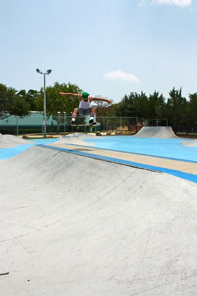 Justin Ryan got buck on this tranny to tranny ollie on the cheese grader concrete. Gotta love 70's tube socks!