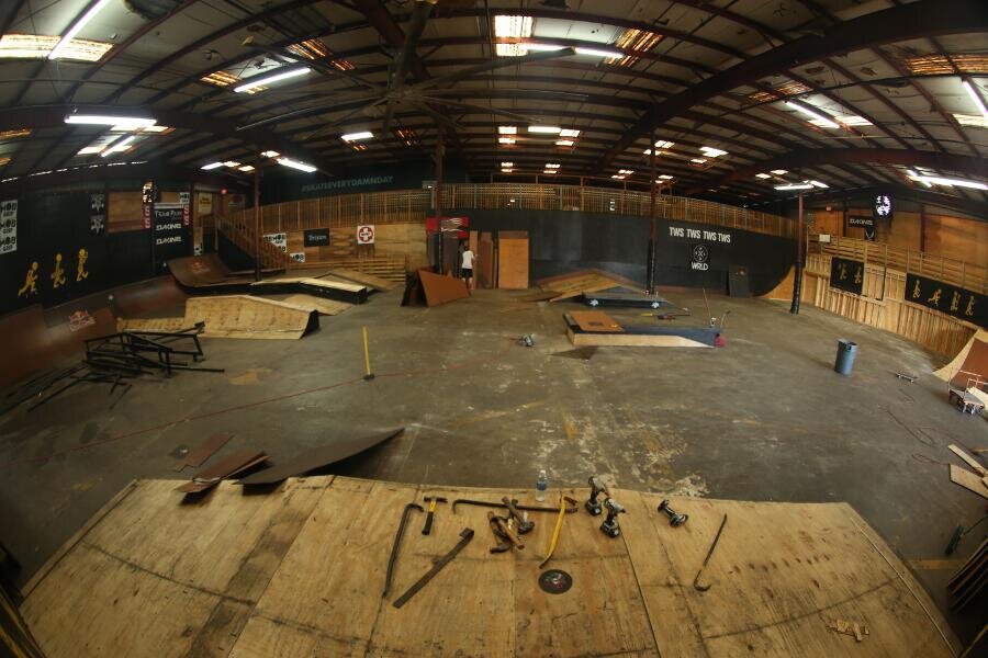 The wallride is also gone, along with the pyramid rail and flatbar. This is what they looked like on their way in.