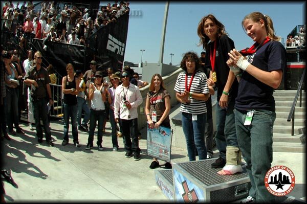 X-Games 11 Girls Street Marissa Del Santo (3rd), Elissa Steamer (1st), and Evelien Bouilliart (2nd)