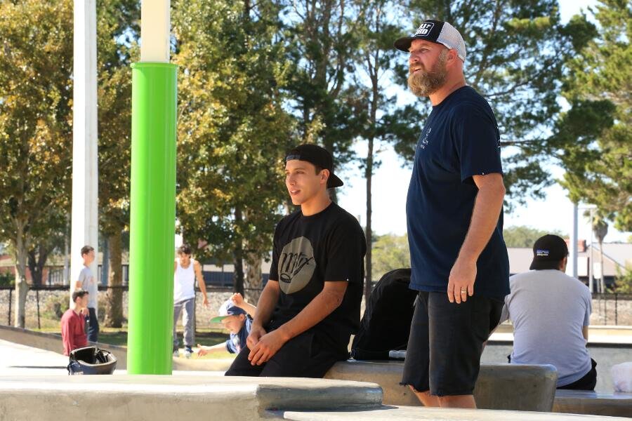 Zack and Gabe watch in amazement as Mike skates the bowl.