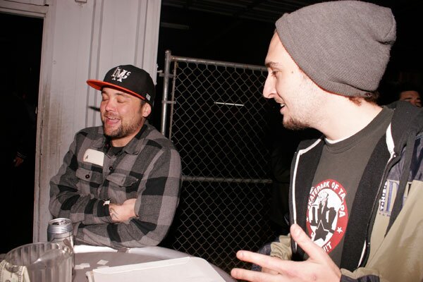 Justin Ryan on the left worked the door on his birthday. Here he is with his co-worker for the night, Afro Jim.