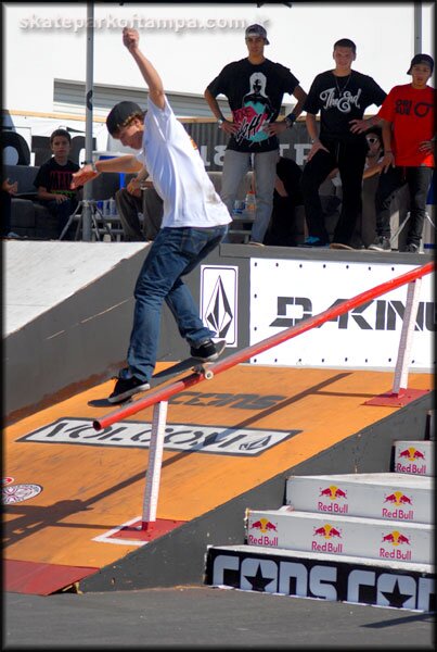 In Nate Linford's footage he sent me to get into Damn Am, he did a heelflip indy so I almost cancelled him. He ended up doing pretty good in Friday's Qualifiers. This is a back smith on the rail