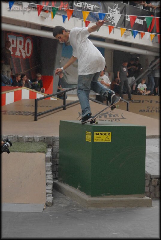 This is Neverton Casella back noseblunt sliding the gap to electrical box. Another Brazilian ripper that used the drive thru to go pro