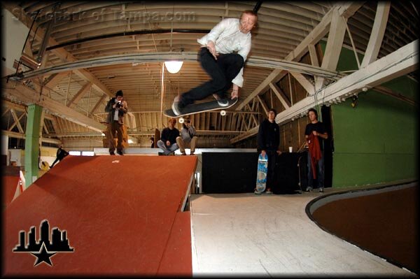 Paul Rodriguez, Danny Supa, and Chet Childress were skating with us the whole time. Chet's doing a backside 360 nosegrab out of the bowl onto that bank
