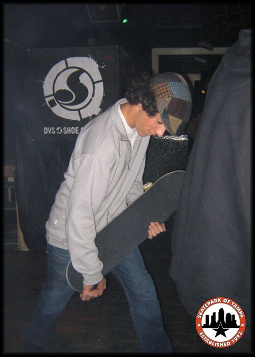Tampa Am 2004 Sunday Contest After Party Patrick Patiallac Webb rocks out on skateboard air guitar.