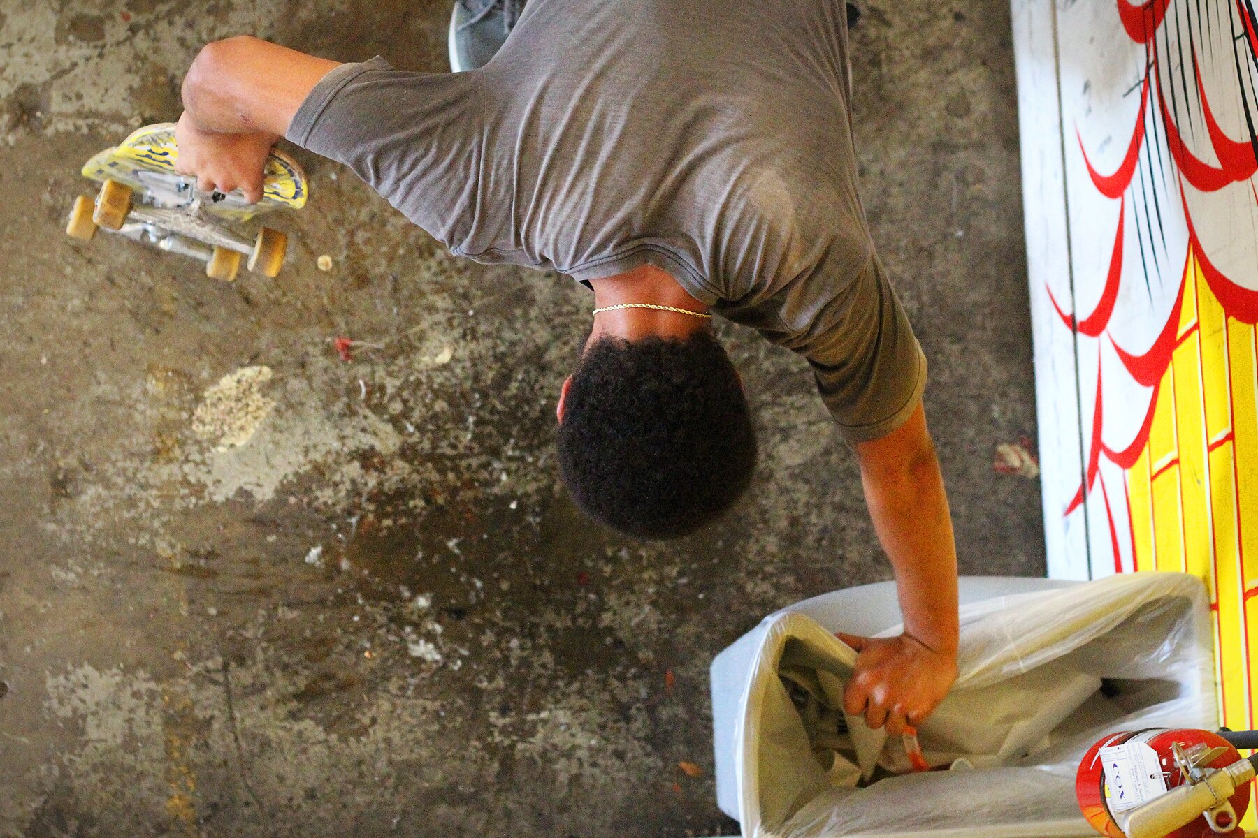 Alex followed up his run with a crazy ender…Puke onto the ground, next to the Garbage can...Perfect
