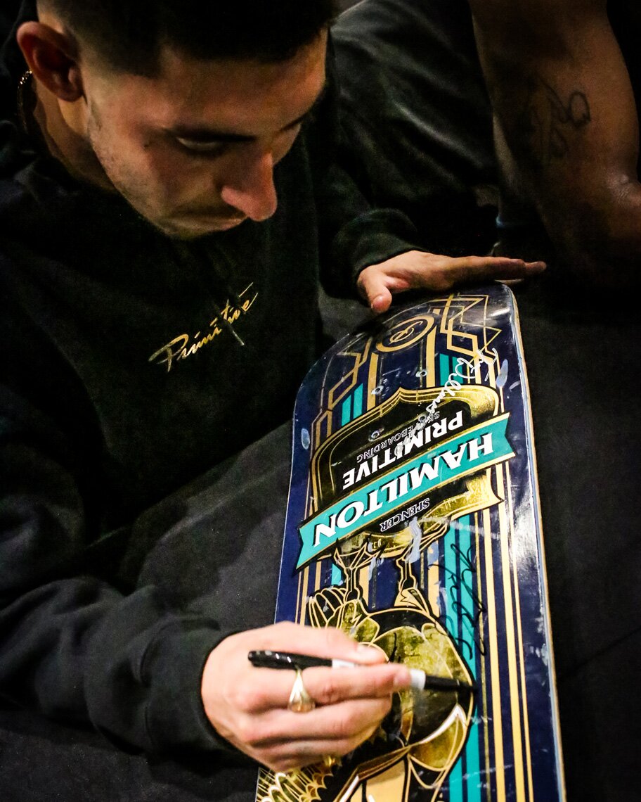 Sponsors: Primitive, adidas, Thunder, Spitfire, Bones Bearings, Mob, PLA Skateshop