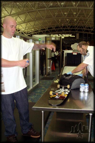 Wow! We made it to the airport on time. Frosty got the security stop because of liquids. That liquid being two beers plus some deodorant. Damn, we need to find Jovan to let us through with those beers