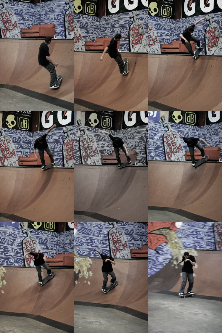 Dungeon Stalk RayRay has a litany of tricks for the corner pocket of the Skatepark. Frontside hurricane to fakie.