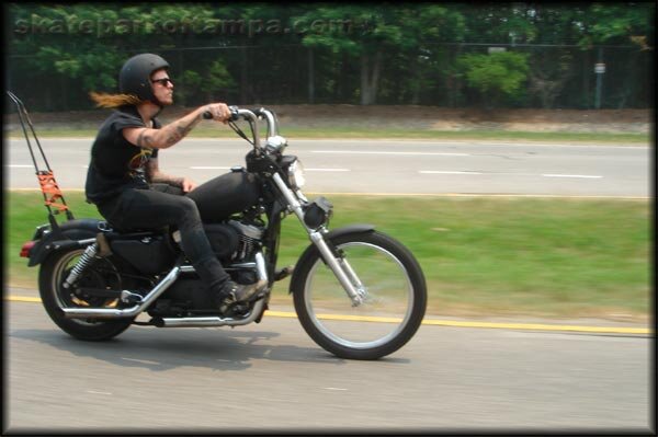 The next morning we left the KOA and got breakfast down by the beach. I shot this photo of Rick Eusey at about 60mph on the way back. He’s another dude that went from am-status to full-on grown-all-biker-man. He’s a badass