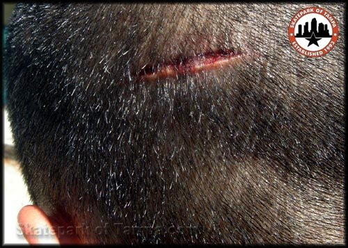 The Why Are We Doing This Tour Ouch - the gash in the back of Rob Meronek's head after some antics in the hotel room