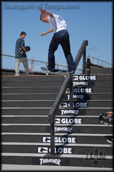 Slaughter at the Opera 2008 Torey Pudwill did a switch big flip down the 7, but I missed it. That's him checking Sheckler's bsts on the big rail