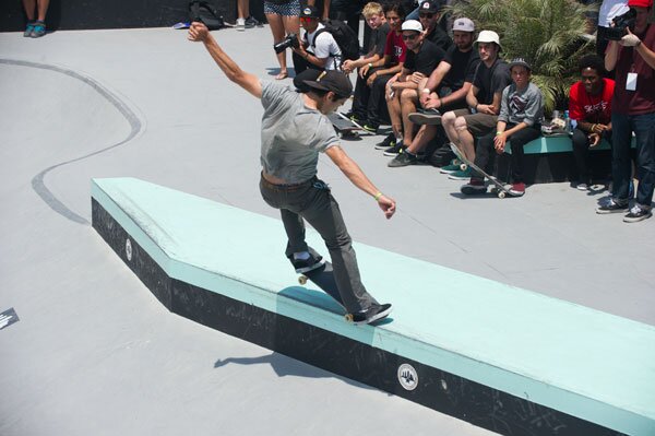 Ryan Spencer's frontside 180 fakie 5-0's on the bank to ledge were looking so good.