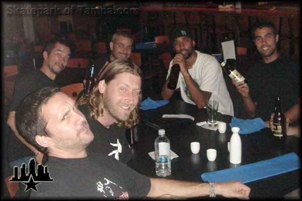 The most popular restaurant in the sketchy skateboard business - Samurai Blue. As you can see, we were the last lurkers in the joint which always gets the servers hyped. That's Brian Schaefer, Ty Evans, some dude with dirt on his face, Ryan Clements, Atiba Jefferson, and Eric Koston. Ty bought dinner - thanks Ty!