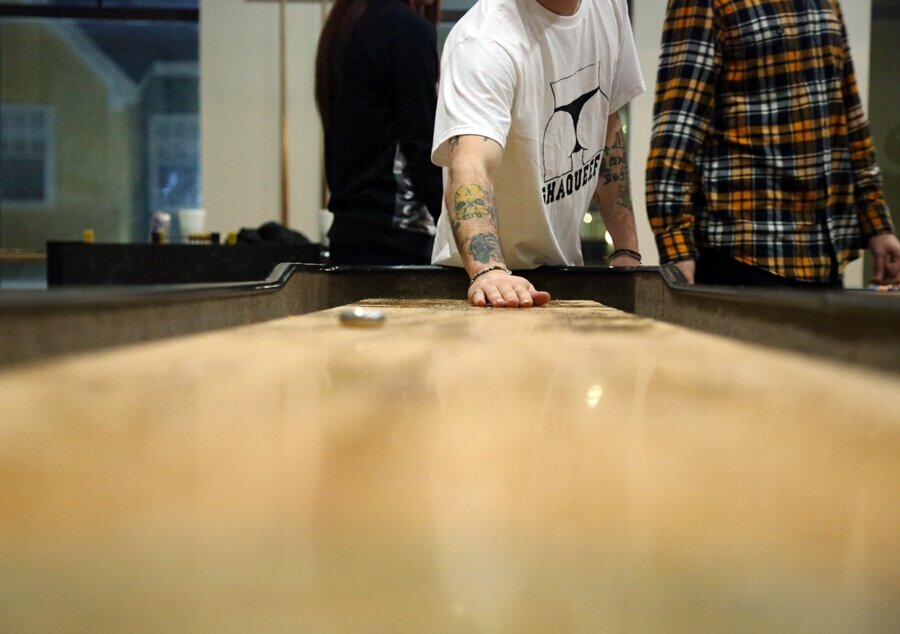 Piro Sierra got down on the shuffleboard table. He's wearing a Shaqueefa tee right now, but I have a feeling he's going to make a wardrobe change before the end of the night.