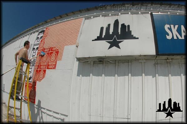 Graffiti artist Shepherd Fairey "Obey" is getting up by skirting the wheat paste poster techinique. He's had a huge influence on street art, as well as skateboard graphics over the years. By posting this on the side of the Skatepark, he's promoting his mass propaghanda to the public via I-4 as well as visually enhancing Skatepark of Tampa's aesthetics.
