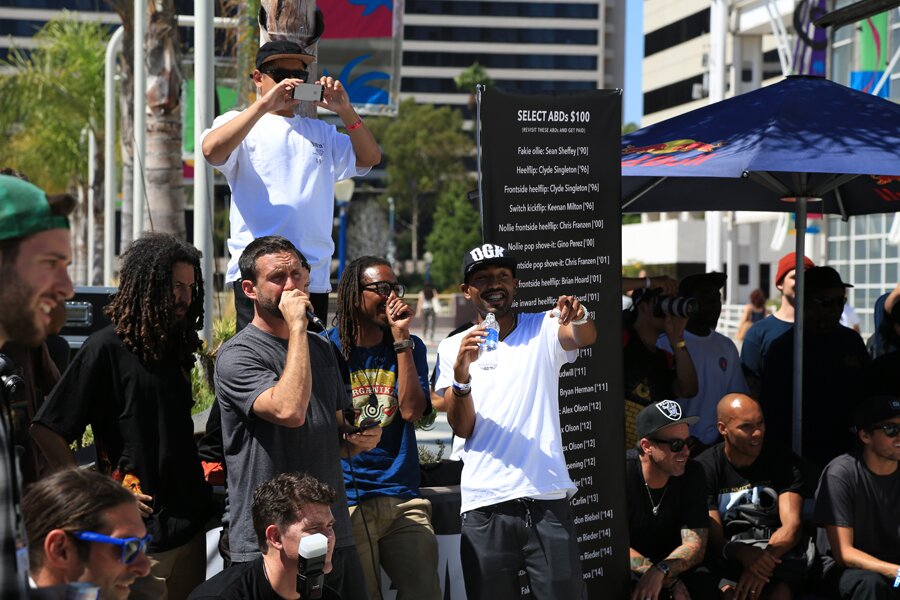 Outside of Long Beach Convention Center, Transworld and The Kayo Corp held a best trick contest over the picnic table called #cashonthetable.