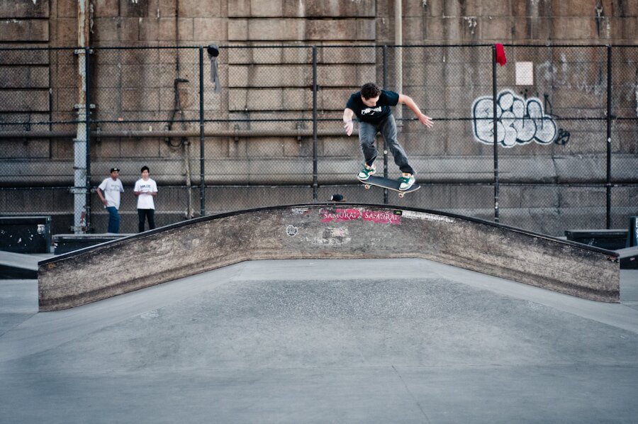 Derek Acosta busts out a huge gap back lip during practice.