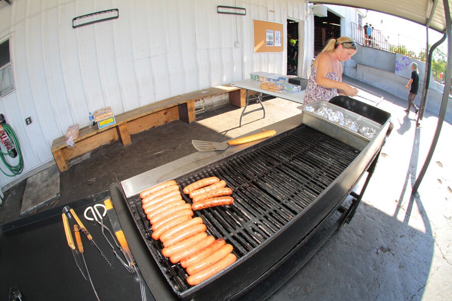 Outside, Jeni was getting the burgers and hot dogs prepped. They’re free for employees but all we ask is you donate at least a dollar to Boards for Bros and you get some!
