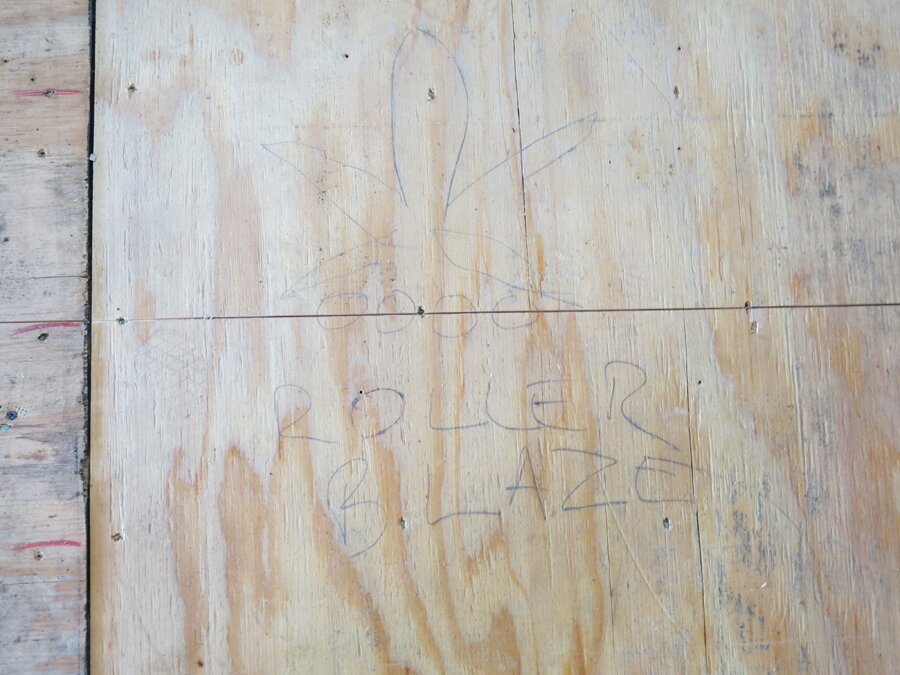 Found this scrawled on one of the old banks next to the stairs after the Skatelite got ripped up.
