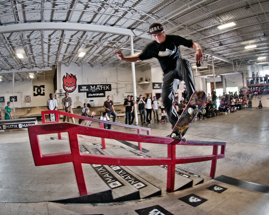 Just barely pulling it off before the end of the best trick contest, Dylan Williams landed this back 180 fakie 5-0 kickflip out.