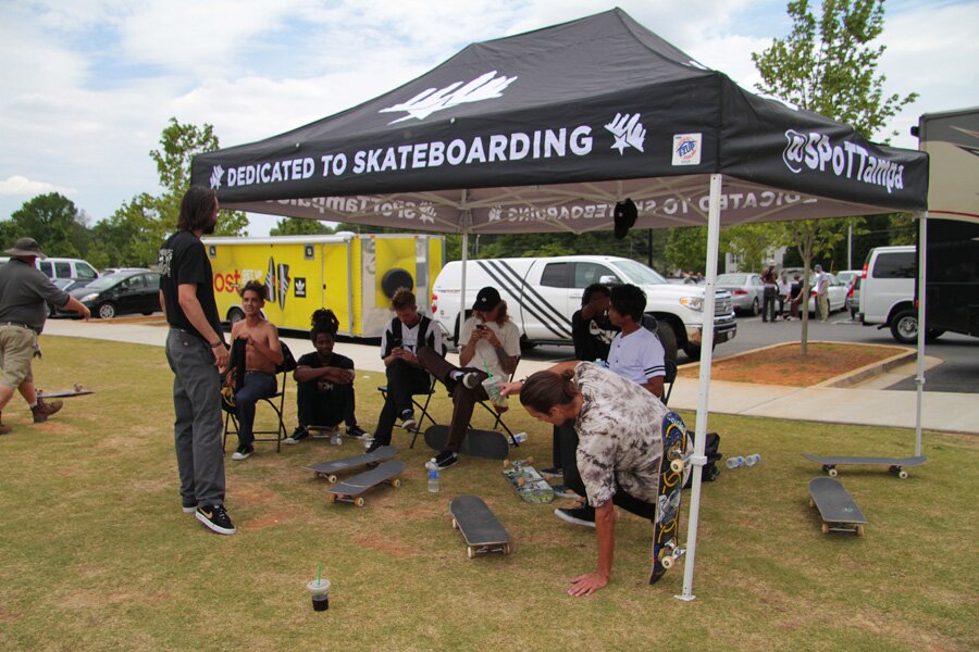 After arriving at the skatepark, we set up our tent and got comfortable. There were 27 shops and a long day ahead of us.