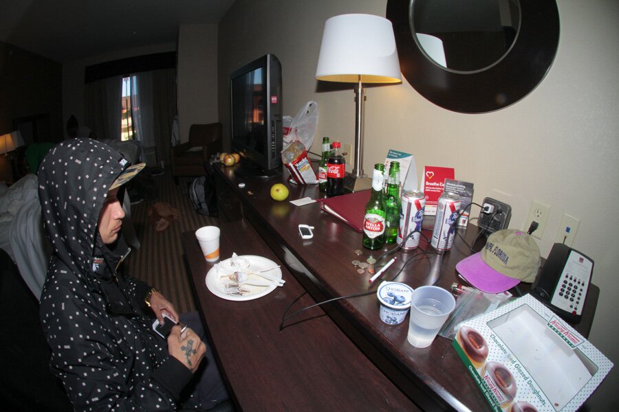After the sun went down, we headed back to the hotel and called it an early night. This was the morning's aftermath, not bad. Beer and doughnuts.