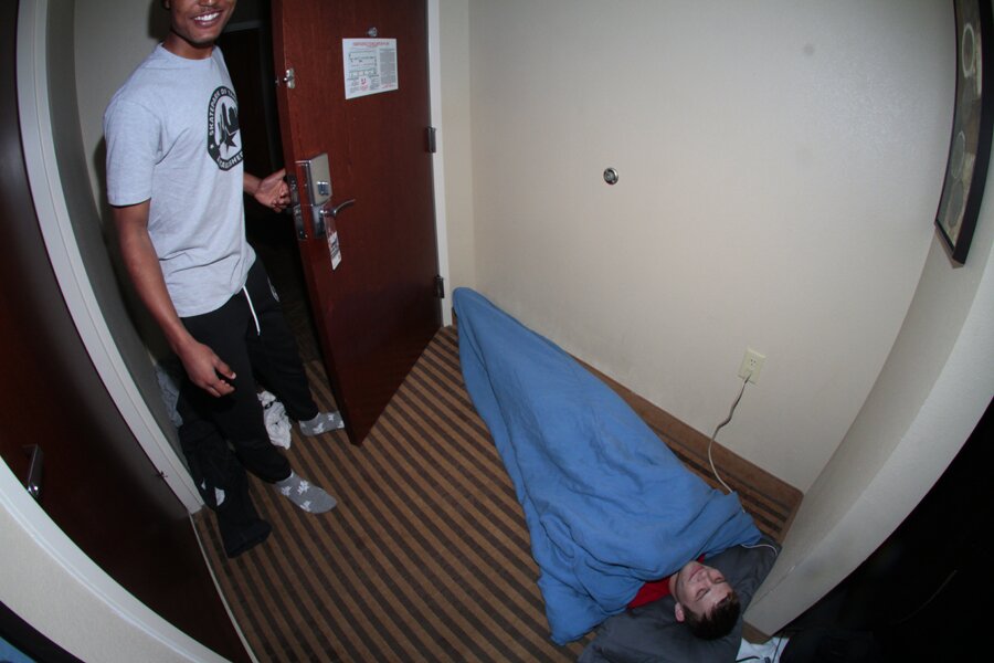 15 people, two rooms…..but don’t tell the hotel lobby that. Sleeping arrangements were first come first serve. Tristan fitting in where he can.