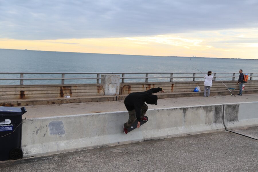 Meanwhile, Pee Wee Kirks gets a wallride up on top of the bridge. You might recognize this barrier from Ishod's Thrasher SOTY cover.