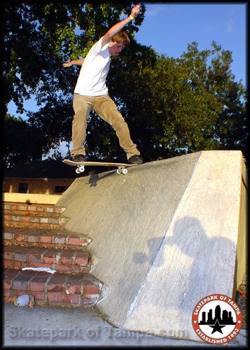 You've seen the slant banks in lots of videos. It's in the middle of the super ghetto and basically in someone's front yard. This is Pat Stiener frontside tailsliding it