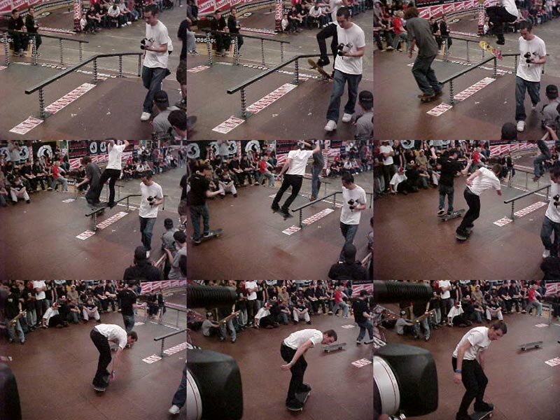 Sent in by Colin Gow. This is Johnny Layton - kickflip frontside feeble backside 180 out with Rob Meronek getting frontground props.