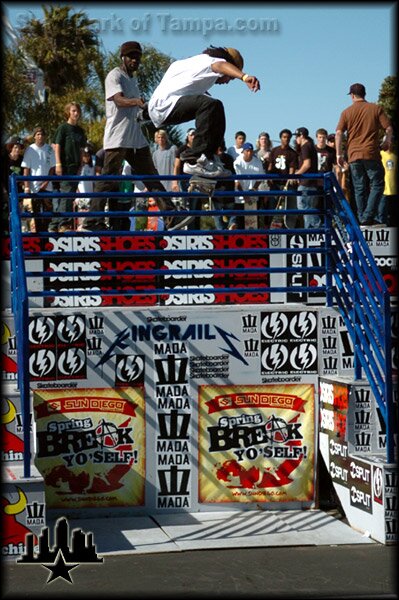 Brandon Turner was killing it. This is a switch ollie over the flat bar. He almost made a backside flip over it but ran out of time