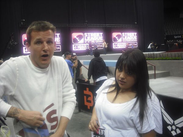 I headed right over to the arena and immediately ran into Rob Dyrdek. As he and I were talking, he was eating a Subway sandwich. When mustard came out the end of it and landed all over Rob’s brand new, white Street League shirt, it was that very moment that I realized that he’s not perfect.