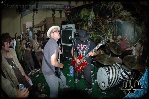 It was getting extra loose as usual in front of the Volcom booth - Tony Trujillo and Jake Phelps' band, Bad $h!t, played
